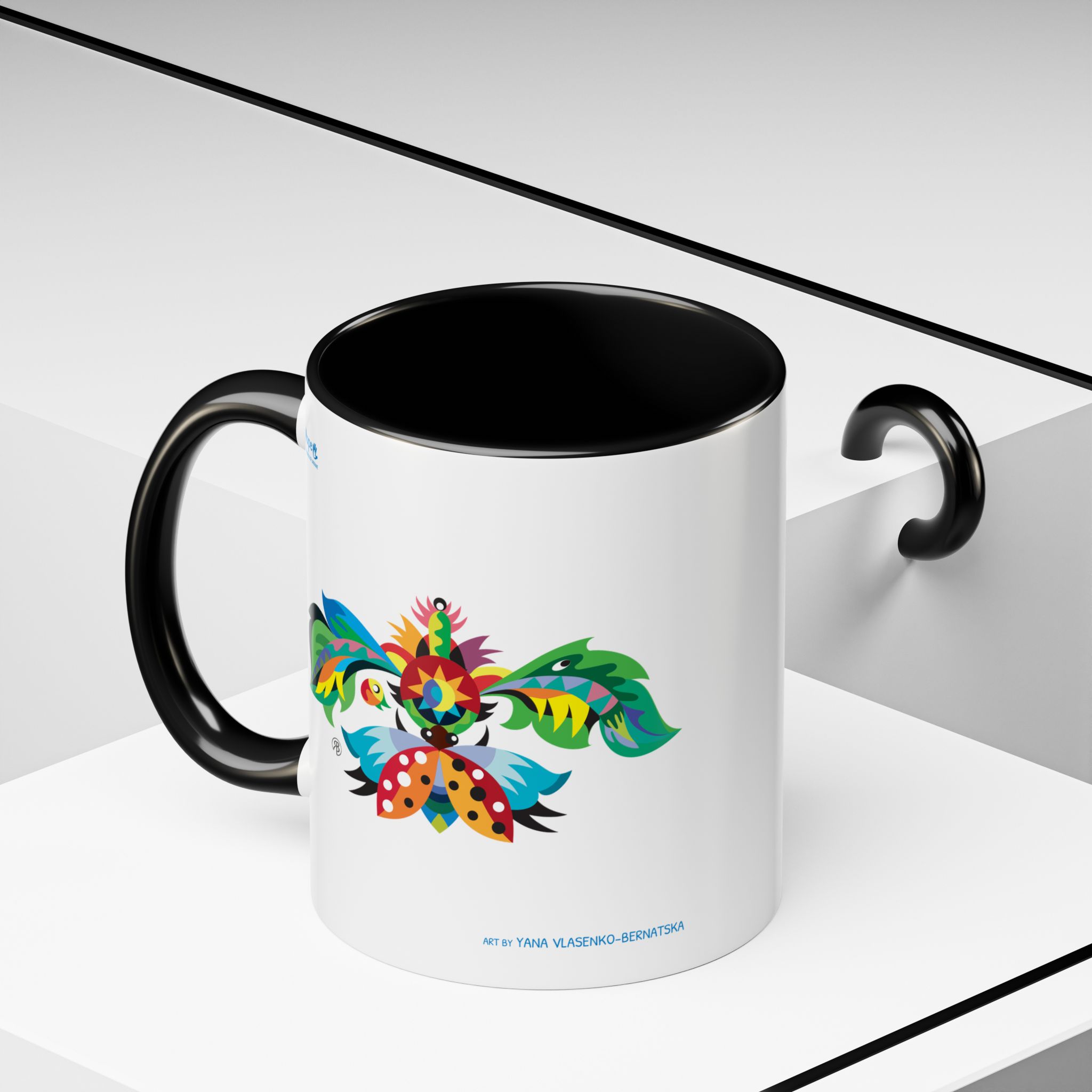 Meet your next favorite morning companion, the accented ceramic mug. This mug brings the perfect blend of style and functionality to elevate your coffee or tea ritual. Available in a generous 11oz (0.33 l) size, this mug offers ample space for your favorite brew. Made with white ceramic and sporting a sleek glossy finish with eye-catching contrast, this mug is a bliss both to use and to look at. The ergonomic C-shaped handle provides a comfortable grip, while the lead and BPA-free construction guarantee peace of mind with every sip.