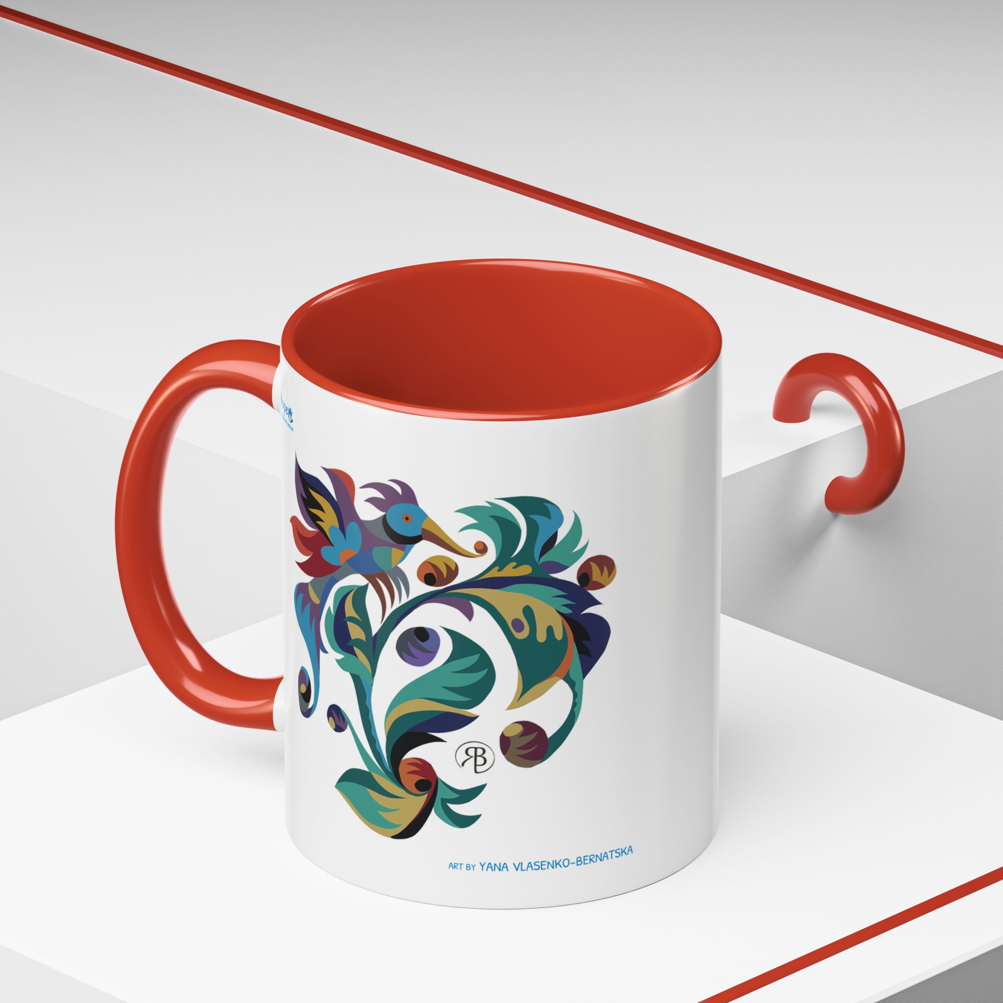 Meet your next favorite morning companion, the accented ceramic mug. This mug brings the perfect blend of style and functionality to elevate your coffee or tea ritual. Available in a generous 11oz (0.33 l) size, this mug offers ample space for your favorite brew. Made with white ceramic and sporting a sleek glossy finish with eye-catching contrast, this mug is a bliss both to use and to look at. The ergonomic C-shaped handle provides a comfortable grip, while the lead and BPA-free construction guarantee peace of mind with every sip.